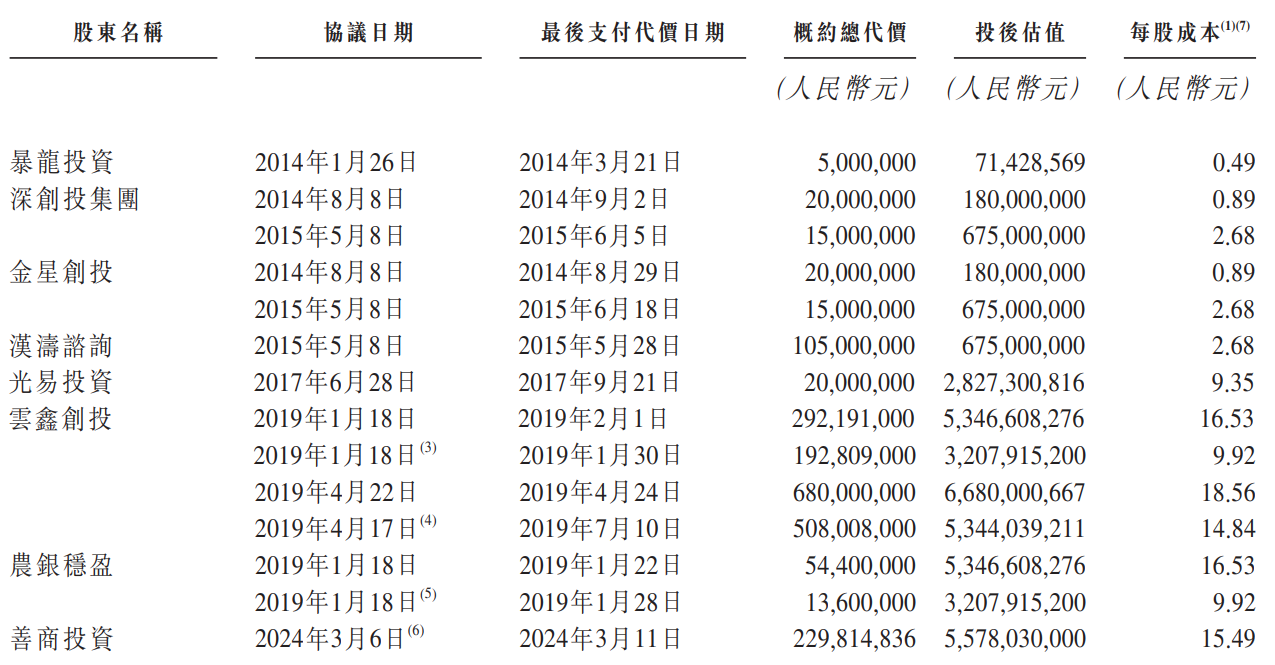 蚂蚁科技通过云鑫创投持股27.27%、美团(3690.HK)联营实体汉涛咨询持股8.2%、小米集团(1810.HK)联营实体金星创投持股7.78%、深创投持股6.88%、善商投资持股4.12%等。