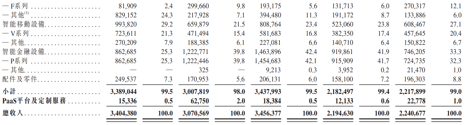 公司收入主要来自商业物联网(BIoT)相关业务,核心为智能设备销售,2023年和2024年该部分收入占总营收比例分别达98.0%和99.5%。重大部分来自智能金融设备、智能台式设备及智能移动设备,其中智能金融设备2024年占比 42.4%,成为核心收入支柱;PaaS平台及定制服务获得的收入比例较小,2023年和2024年占比分别仅2.0%和0.5%,主要提供软件系统支持及定制化服务,属于补充性收入来源。