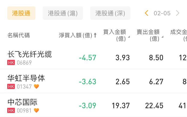 此外,小米集团-W(01810)、东方甄选(01797)分别获净买入5亿、1.2亿港元。而长飞光纤光缆(06869)遭净卖出4.56亿港元。
