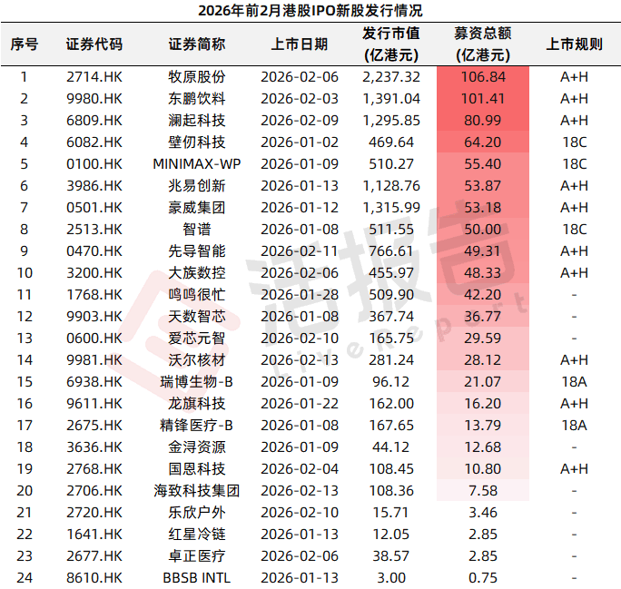 合计募资近426亿港元,占同期香港IPO募资规模的九成以上,成为春节前港股IPO市场的核心支柱