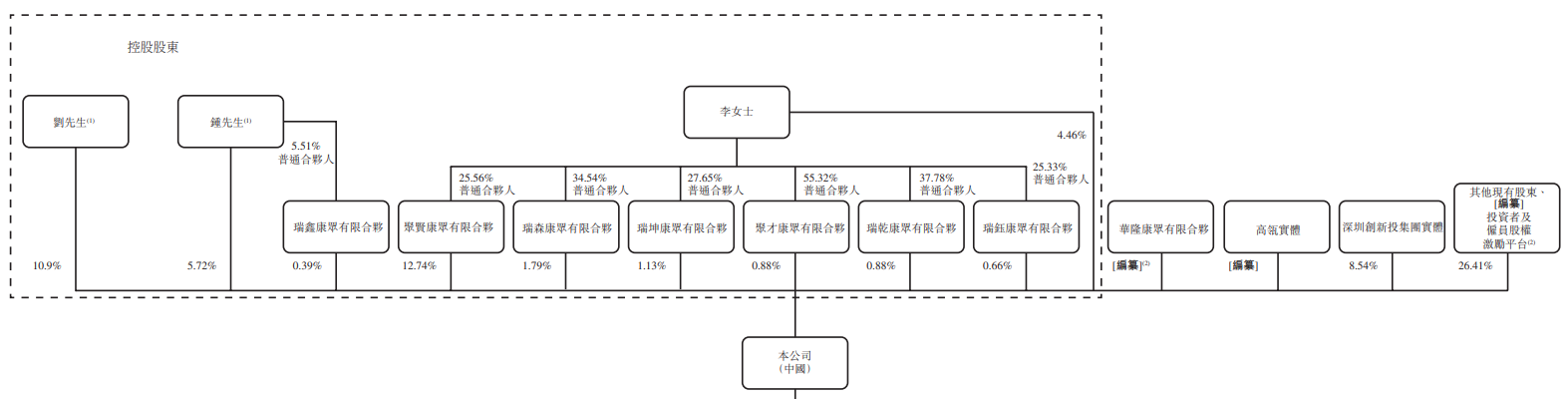 高瓴、深创投、汉石投资等一众知名机构也在股东之列。其中,高瓴通过珠海高瓴、天津振盈等实体合计持股超过20%。