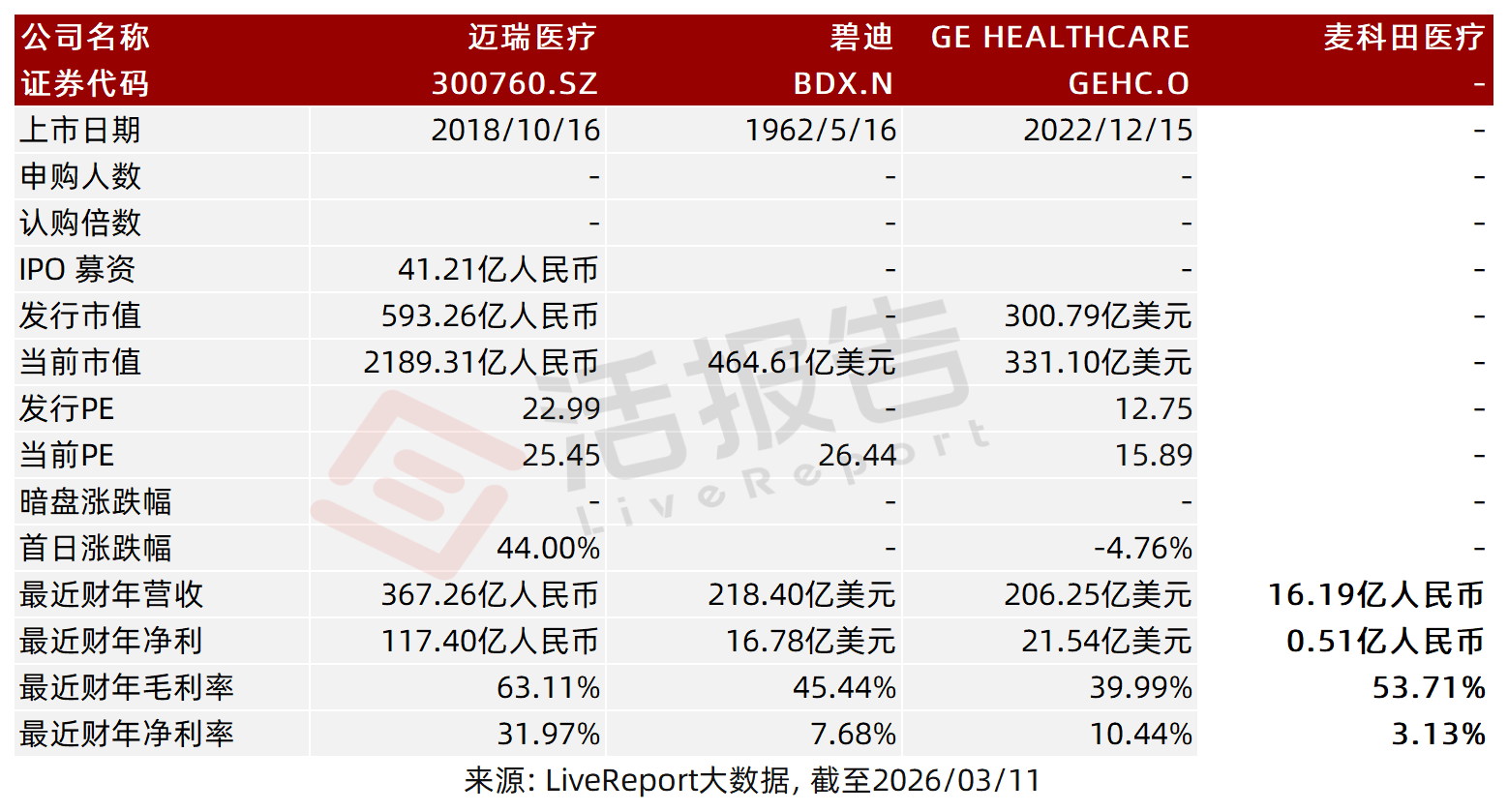 2026年3月11日,深圳麦科田生物医疗技术股份有限公司Medcaptain Medical Technology Co., Ltd.(简称“麦科田”)第