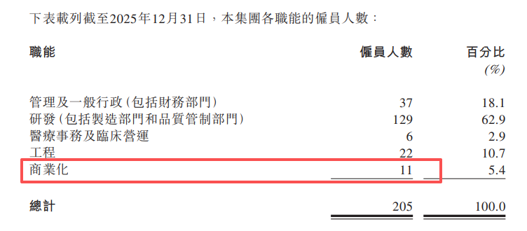值得一提的是,公司业绩报表中首次出现销售及分销开支约75.8万人民币,虽然金额不大,但对比2025年中期报告,上半年尚未有此项支出,由此可推测公司下半年才开始着手商业化团队事宜,且从公司雇员结构上看,新增了11位商业化人员,预计公司核心产品“LZ901”的商业化近在眼前。