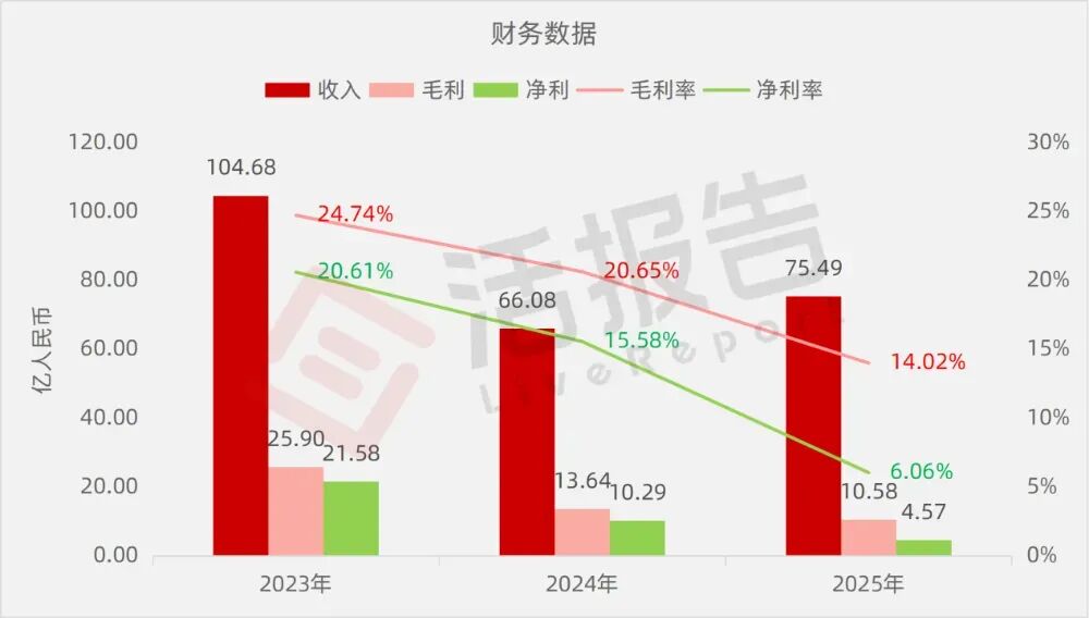 净利分别约为人民币21.58亿、10.29亿、4.57亿,2025年同比-55.56%;