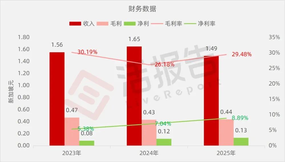 毛利分别约为新加坡元0.47亿、0.43亿、0.44亿,2025年同比+1.78%;