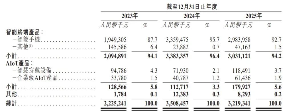 公司提供多样化的产品组合,以智能手机、平板计算机及智能手表为核心,并已扩展至新一代AIoT产品,包括AI数据采集终端、AI支付终端、AI眼镜、机器人产业以及AIoT部组件。