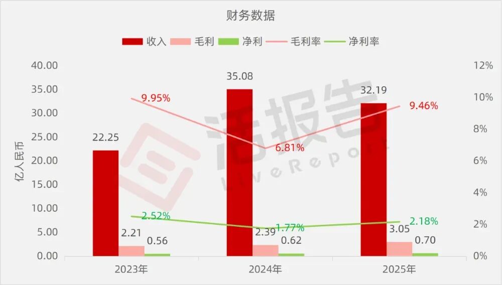 收入分别约为人民币22.25亿、35.08亿、32.19亿,2025年同比-8.24%;