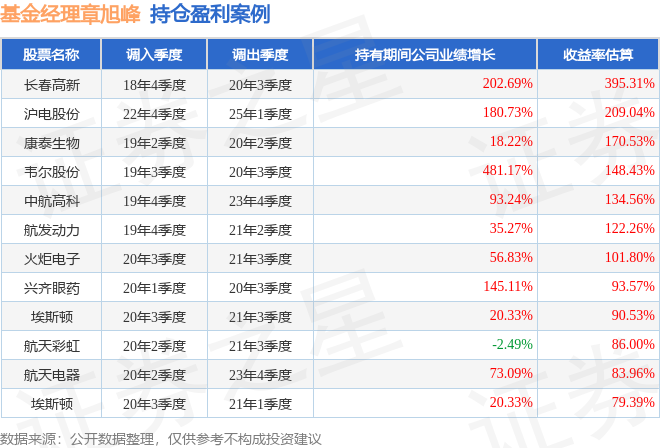 以下为章旭峰所任职基金的部分重仓股调仓案例: