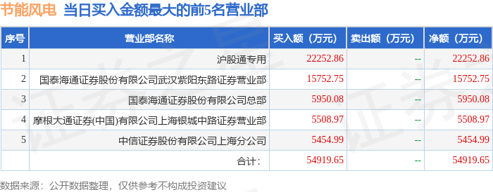 证券之星消息,沪深交易所2026年4月23日公布的交易公开信息显示,节能风电(601016)因有价格涨跌幅限制的日收盘价格涨幅偏离值达到7%的前五只证券登上龙虎榜。此次是近5个交易日内第1次上榜。