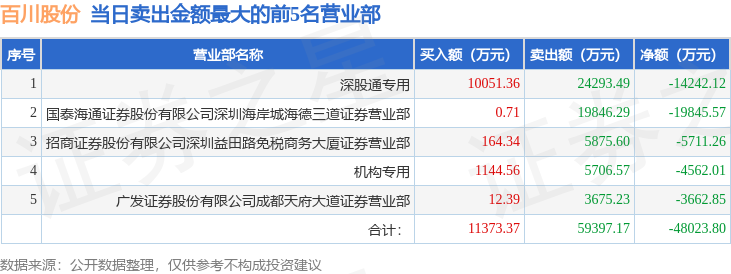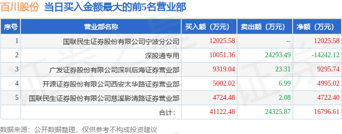 证券之星消息,沪深交易所2026年4月23日公布的交易公开信息显示,百川股份(002455)因日换手率达到20%的前5只证券登上龙虎榜。此次是近5个交易日内第1次上榜。