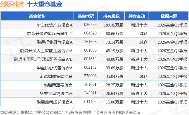 重仓剑桥科技的前十大公募基金请见下表: