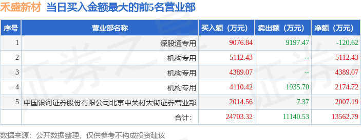 从龙虎榜公布的当日买卖数据来看,机构合计净买入1.17亿元,北向资金合计净卖出120.62万元。