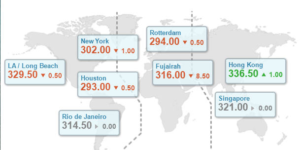 船用重油在过去一个月也上涨了不少,现在保持在300美元左右。