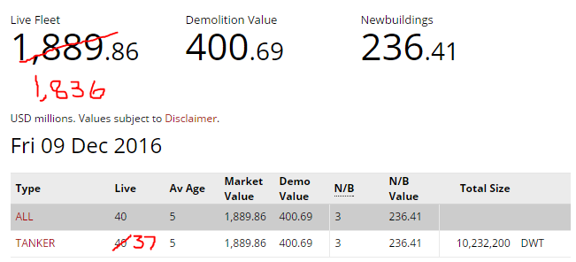 根据GNRT16年三季度报,公司进行了三项交易,淘汰了一些老的油轮。根据第三方机构VesselsValue的调查,公司目前服役的油轮价值如下。值得注意的是,这些估价已经是历史低位了,而且从去年又降低了6亿美元。