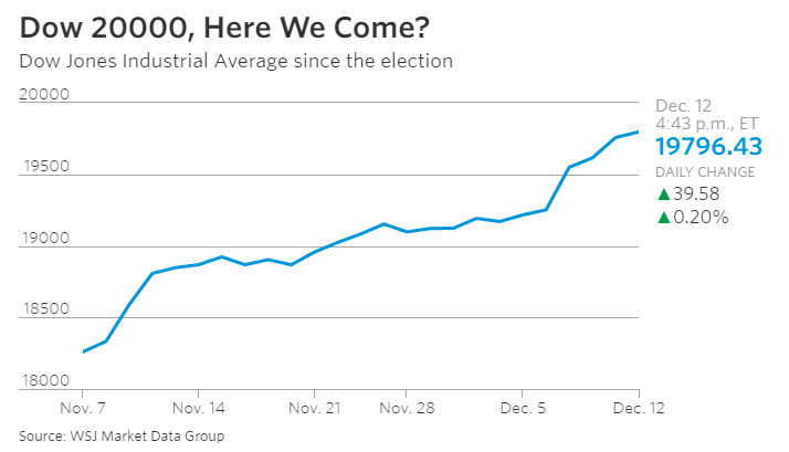 由于投资者预期政府会减税、实施更多财政刺激并放宽监管,风险资产的价格也相应上涨。到耶伦发表讲话时,道琼斯工业平均指数有可能会突破20000点大关。该指数今年已经上涨了13%。
