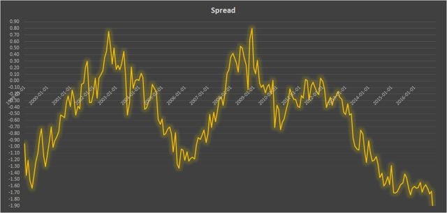从以上图表可以看出,随着债券收益差进一步扩大,欧元兑美元汇率可能会跌破1或是更低。