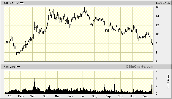 11月底,笔者曾力荐Seabridge Gold (NYSEMKT:SA),从长远来看,笔者现在依然看好该股,“ Seabridge Gold公司之所以吸引人,是因为它的发展理念与经常被黄金投资者忽略的一个度量标准不谋而合,这个标准即流通股股数与支撑这些流通股的黄金储备量之比。”Seabridge Gold公司自称要创建“地下ETF”(该公司的发展理念是通过使黄金储备的增长速度超过流通股数量增长速度来实现股东权益增值),而从目前来看这个理念是站得住脚的,长远来看这个理念也应该会给投资者带来回报。因此,Seabridge Gold公司近来股价下跌,此为一个不错的买入点。