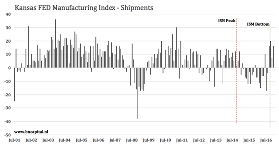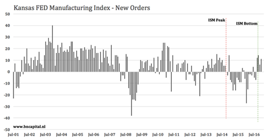 新订单指数上升五个点,该指数的增长在2016年第一季度非常疲弱和不稳定。当时不仅在堪萨斯,整个美国都是这样的情况,所幸,这里终于得到了增长的确定。