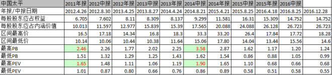 根据2016年中报的数据以及2016.12.28的股票价格来看,中国太平无疑是最低估的,PEV只有0.59,和其他公司的差距还是不小的。