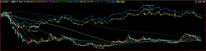 2016股价走势远远落后于恒生指数和国企指数:
