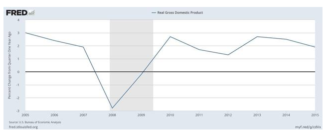 从上图可见,GDP年增长率最高为2010年和2013年的2.7%。如果按季度算,自2006年以来,GDP增长率仅有3次超过3%,它们分别是2010年第三季度增长3.1%,2015年第一季度增长3.3%以及第二季度增长3.0%,仅此而已。如此一来就能明白为何股市最终会活跃起来。