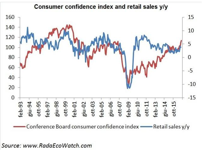 过去几周公布的消费者信心指数显示美国经济会在2017年年初保持不错的增长势头。
