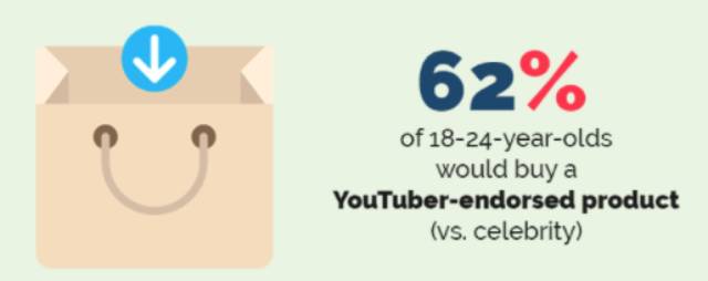 此外,他们的数据还显示62%的年轻人将倾向于购买Youtbue博主推荐的产品。
