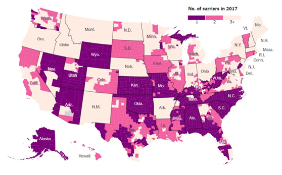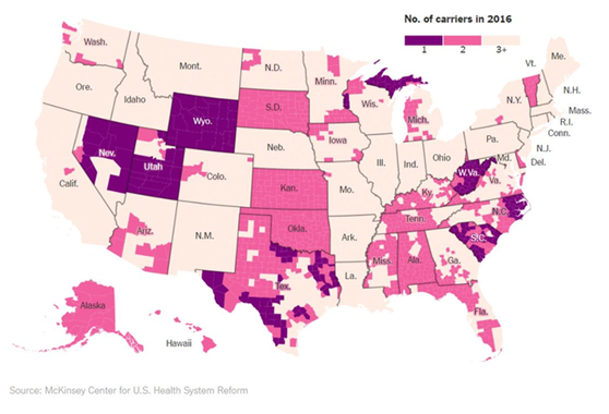 有意思的是,来自Mckinsey center的两张图显示,2016年,很多保险公司因奥巴马医保选择退出市场,而随着奥巴马离任,它们在2017年又重新回来。