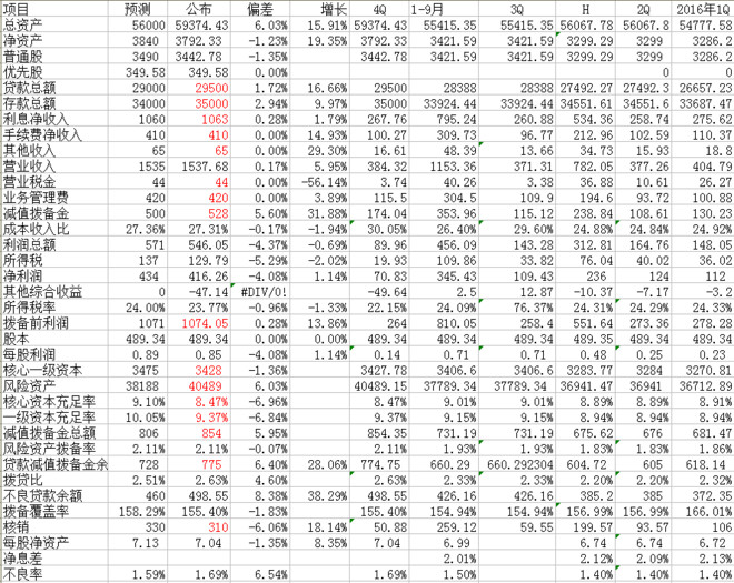 附表 中信银行2016年快报预测公布偏差推算情况表 (标红的为经过重新推测后的数据)
