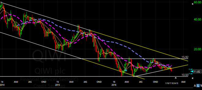 今天看着QIWI日线破位比较烦;尤其打开YNDX, RSX一比较,QIWI在过去一年严重跑输。仅仅从技术上看,10-15块区间没有破掉的话。现在顶多还是一个大的盘整态势。但从基本面上,却随着下跌显现出更多的投资价值。因此趁此机会梳理一下投资QIWI的理由。