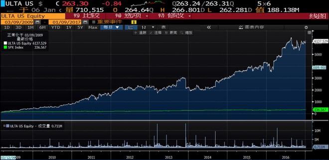 怎样解释Ulta Salon的销售从2009年到2016年增长了仅4倍,为何股价却增长了60多倍,背后的秘密其实就是市场的非理性。