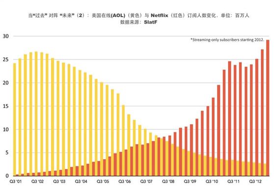 2005年流媒体之前,Netflix订阅人数为420万;2016年流媒体十年之后,Netflix订阅人数为8320万。