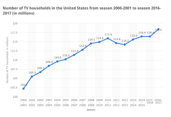 与原创剧数量大幅度增加想配套的是有线电视订阅人数大幅度增加。
