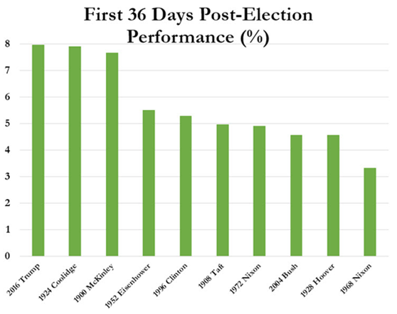 与前任总统们的状况相比,特朗普胜选后、“登基”前的股市涨幅是美国历史上最大的一次。然而随着宣誓就职日的临近,“特朗普行情”的狂欢是否持续会是一个问题。