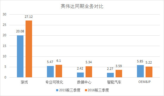 从财务数据上看,根据英伟达2016前三季度同期营收对比,在游戏、专业可视化、数据中心、智能汽车、OEM&IP五项业务中,数据中心和智能汽车同期增长比例最大,数据中心同比增加120.7%,智能汽车同比增加58.1%。这两项业务都与人工智能有关。