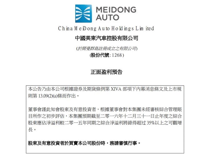 1月16日中午,中升控股(881)公布盈利预喜,截至2016年12月31日止年度的综合溢利将大幅提升,将不低于去年同期的350%,远比市场想象中好。中升业绩受惠于奔驰销情理想,奔驰的直接竞争对手就是宝马和奥迪,可想而知两者不少份额给奔驰抢去了。