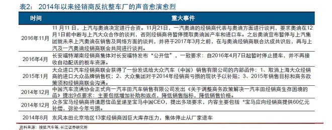 至于4S店跟车厂的关系,自2014年以来已经出现了多件经销商反抗车厂的事件,可见下图: