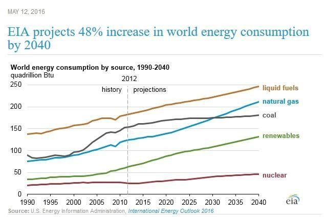 能源的重要性在未来几十年将越来越明显,当前全球对能源的野心才刚刚开始。新兴市场运用能源基础设施为全国发电才刚刚起步,发达国家对能源的需求也在不断上涨。据美国能源署(EIA)预测,到2040年,全球的能源消耗量将会上涨48%。