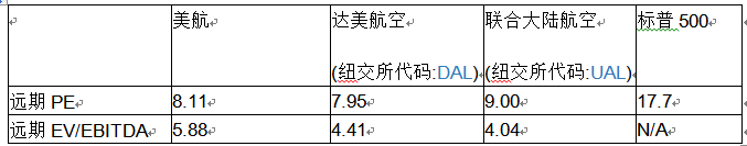 与一般市场相比,美航及其他主要航空公司的估值过低。当前远期PE低于10且保持盈利增长的公司并不多见。下图对美航与其他主要航空公司及标普500作了估值对比: