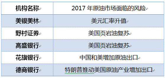 四、五大投行对 2017油市面临的风险判断