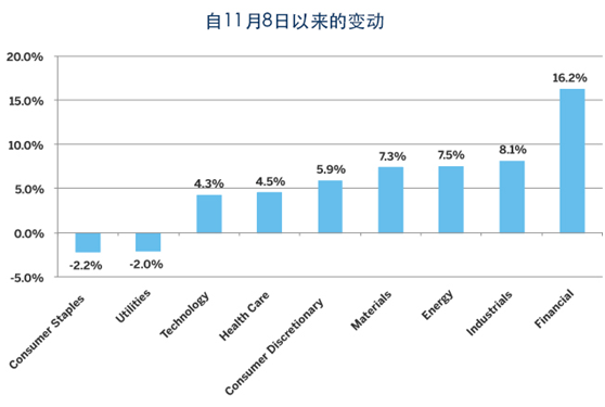 自大选结束后,美元对多数主要货币升值。Norland认为,在大多数情况下,美元升值对股市不利:这会降低美国公司在海外的竞争力。但是这对金融板块有利,但对原材料股和公用事业股不利。