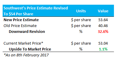 在研究公司的最新财报及盈利目标后,笔者将西南航空的股价预期上调至54美元,以下列出笔者上调股价的主要理由: