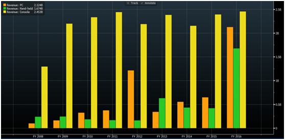 与玩家的丰富互动,以及玩家的后续消费,使得2016年公司产品的花费时间超过430亿小时,玩家消费总计36亿美元,再次打破历史数据。