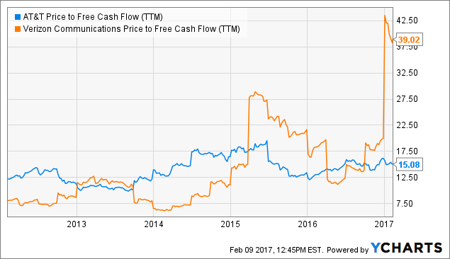 笔者看涨公司股价并非毫无依据。从估值角度上看,与同行公司Verizon(纽交所代码:VZ)相比,尽管AT&T市盈率稍高,但公司的股价/自由现金流比率远低于Verizon。