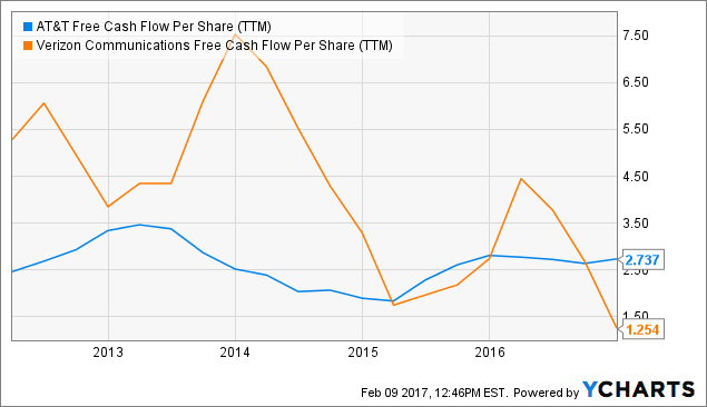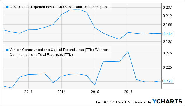 即使在收益上作比较,公司的远期市盈率仅为13.5,比标普500中的其他大盘股要低。此外,观察下图可知,两家公司在资本支出占总支出比例上相近,但相比之下,AT&T产生的自由现金流更多。