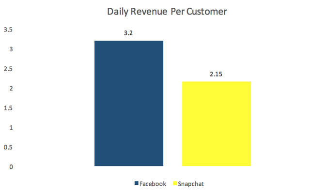 与此同时,Snapchat单个客户产生的收入也逊色于脸谱2011年进行IPO之前的业绩。脸谱平均每个用户产生的收入为3.2美元,而Snapchat仅为2.15美元。这对Snapchat而言并非好预兆,除非它能够找到一种更有效的商业模式来实现突破。