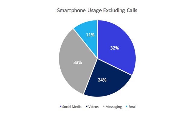 Snapchat的管理层开始通过增加现存用户的参与度来寻求突破,而非吸纳新的用户。但实际上,提升用户参与度要比增加用户数难度高很多。据分析师预估,Snapchat的用户平均每天花25到30分钟的时间使用其APP,此时间仅为脸谱用户花在其应用软件上的时间的一半。当前,每个美国人平均每天花在手机上的时间为186分钟(除去打电话和发短信的时间),其中44分钟用来看视频,60分钟用于社交网络。假设Snapchat已占用其中的25分钟,那么在与脸谱、YouTube和Instagram的竞争中,它若想再分一杯羹似乎非常困难。