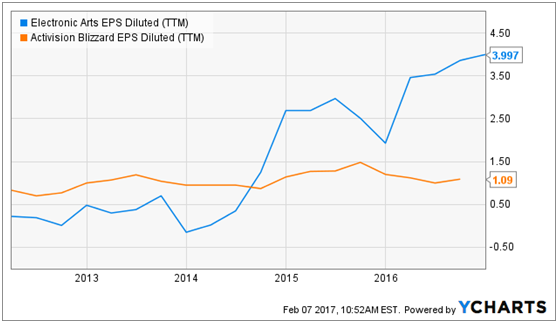 但在2017年,新的质量效应:仙女座将在3月发行,该系列已经证明了自己的价值,始终为公司的一个重要收入来源。而且,手游端继续表现强劲,在去年净收入就以16%的增速迅速发展,而且在整个移动端市场未来将会以接近7%的增速发展。