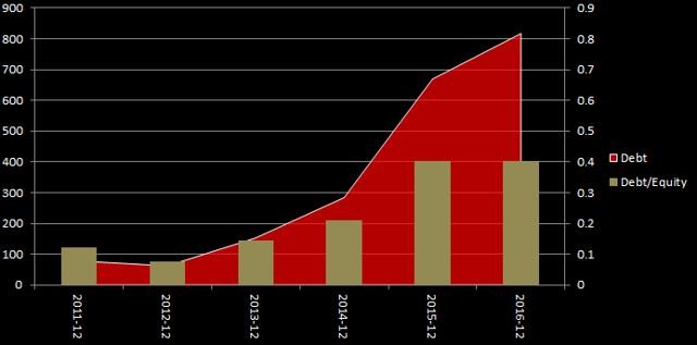 投资者另外的担忧就是其债务。近年来,安德玛的债务增长速度高于其营收及股东权益增长速度。