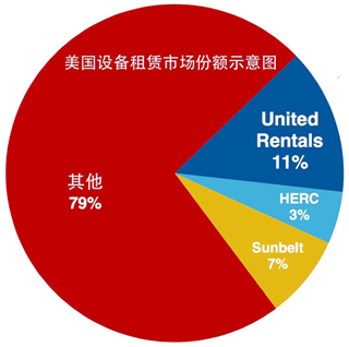 设备租赁分为一般类和特殊类,大到工程机械的装载机、挖掘机,小到电锯、钻头,公司库存种类就高达3300类,应有尽有。其丰富的库存,加上高效的运营和资金管理,形成了公司的核心竞争力:规模效应。加上公司采用生命周期法的管理模式,通过大数据对库存进行维护,更让公司如虎添翼。公司占整个美国租赁市场的11%,其中工业设备占公司租赁业务的51%,商业类占45%。